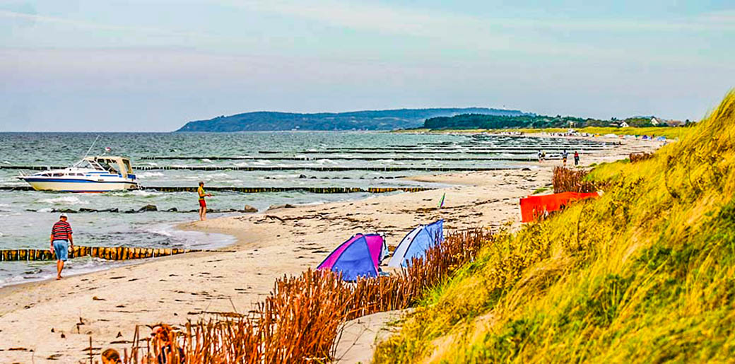 Die ganze westliche Küste von Hiddensee ist von den Sanden aus den Uferabbrüchen vom Dornbusch naturlich aufgespült. Je weiter man nach Süden kommt, um so feinsandiger wird der Strand.