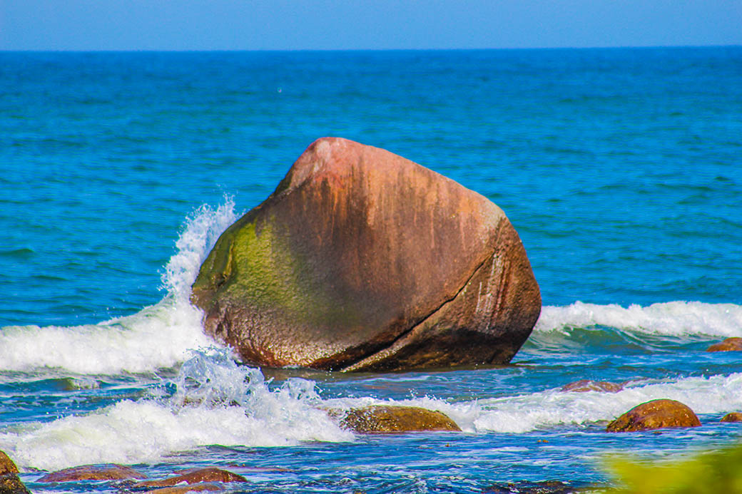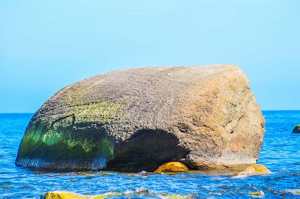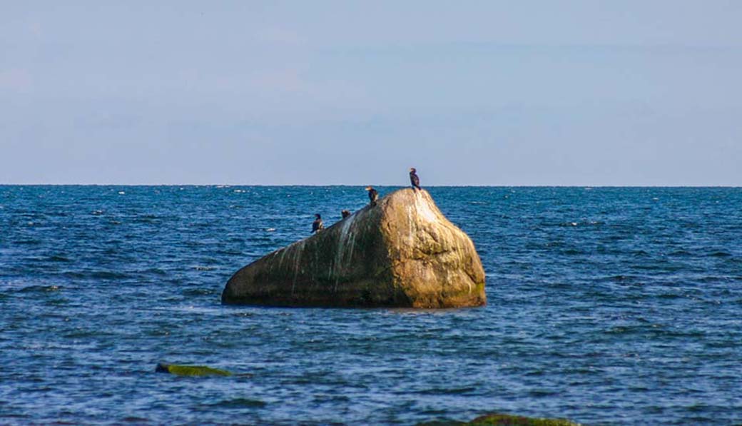 Der größte Findling Rügens liegt gut 300 Meter vor der Küste von Göhren. Er dient meist den Komoranen als Rastplatz bei der Fischjagd.