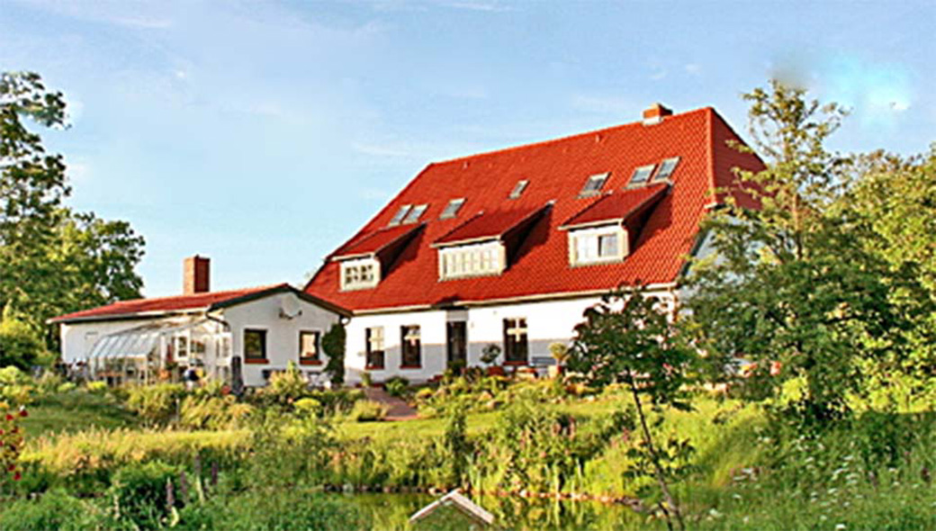 Die kleine Hofanlage liegt am Rande des flachwelligen Niederungsgebiet Südwest-Rügens in der Gemeinde Gustow.