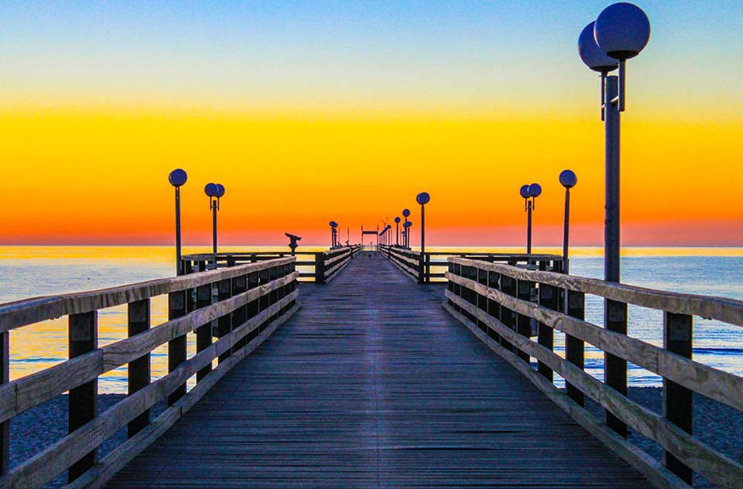 Die Seebrücke im Ostseebad Binz beim Sonnenaufgang