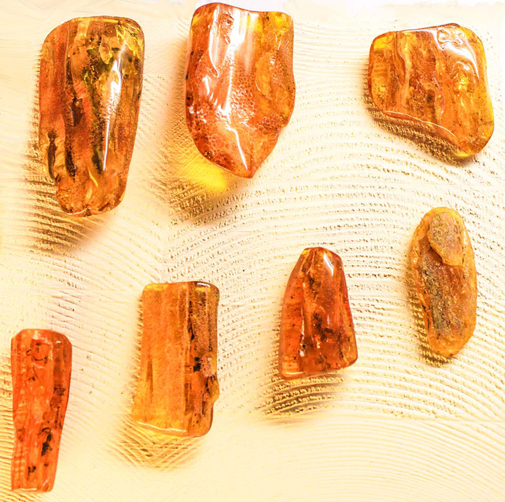 Seit alters her schreibt man Bernstein heilende und wohltuende Wirkungen auf den Menschen zu. Artikel aus Bernstein sind Schmucksteine, Ketten, Armbänder, Anhänger, Zahnketten für Kleinkinder, mohammedanische Gebetsketten, neuerdings auch Lampenschirme und Bilder.