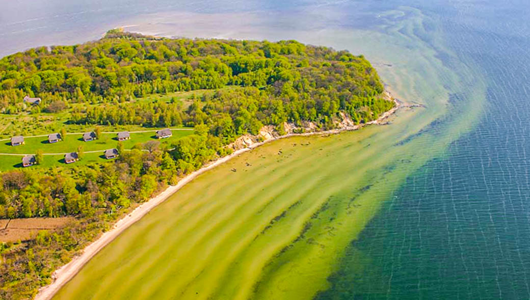 Die Insel Vilm erstreckt sich von Nordost nach Südwest im Rügischen Bodden
