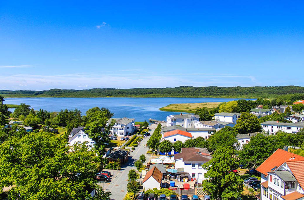 Die Schmachterseestraße führt, als Verlängerung der Hauptstraße, direkt bis an den Schmachter See. Ostseebad Binz.