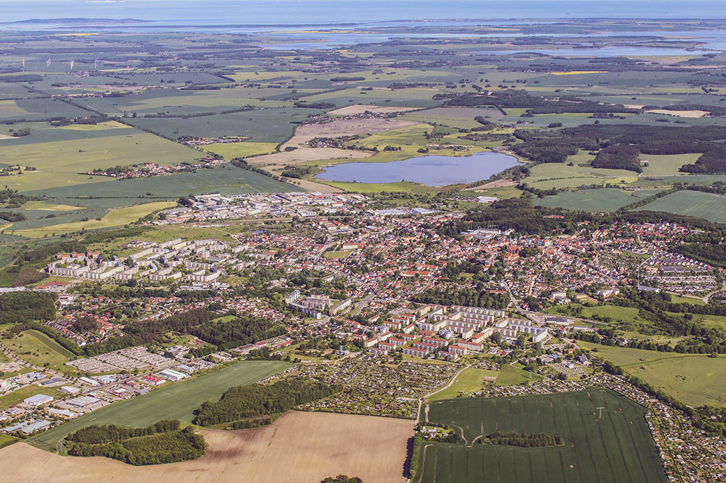 Luftaufnahme von der ehemaligen Kreisstadt Bergen mit dem Nonnensee.