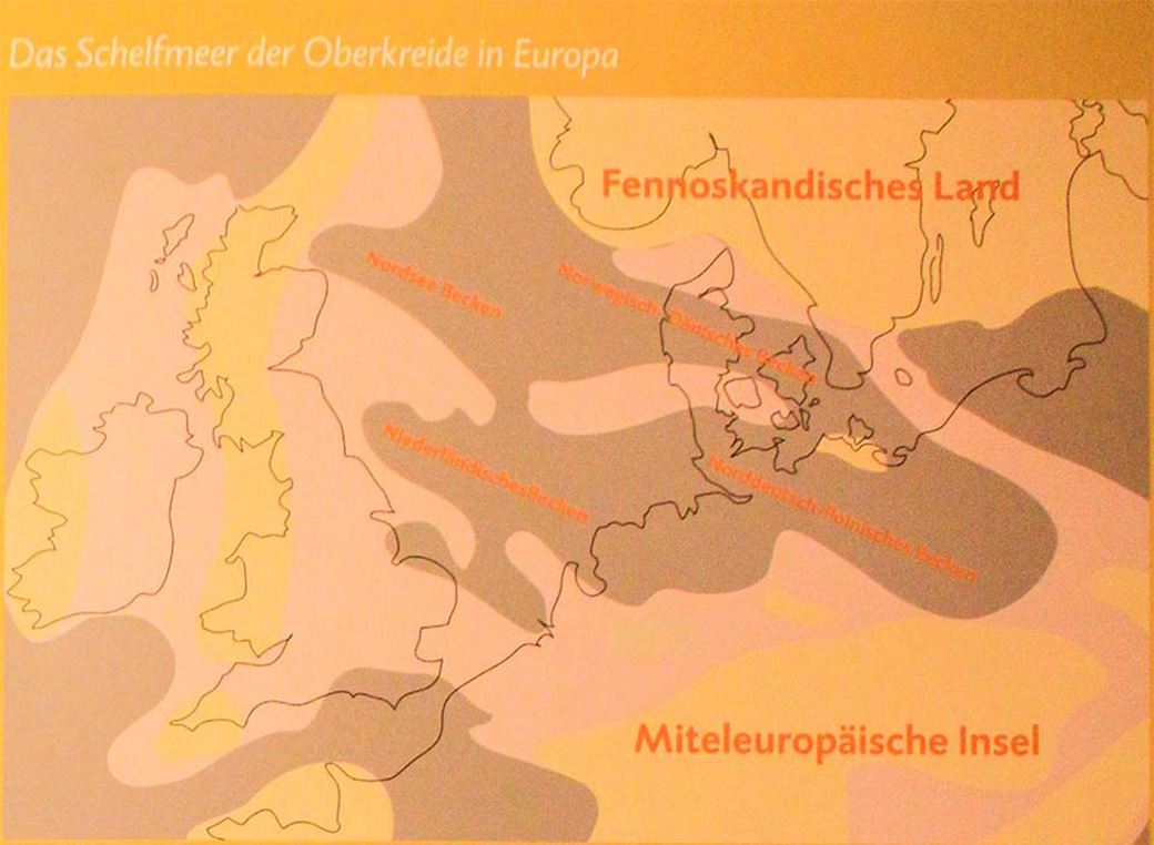 Karte Kreideablagerungen im Schelfmeer. Fotos aus dem Kreidemuseum in Gummanz.